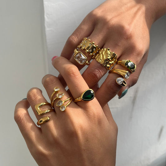 Stainless Steel 18K Gold PVD Cubic Zirconia Ring Collection