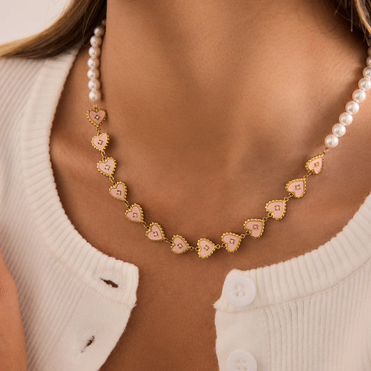 Stainless Steel Freshwater Pearl Heart-shaped Pendant Necklace