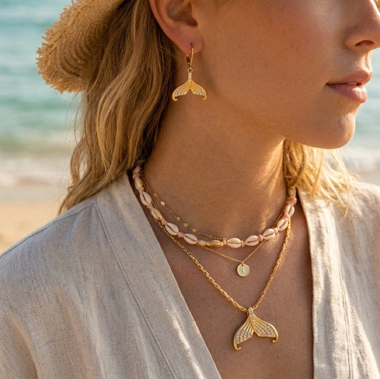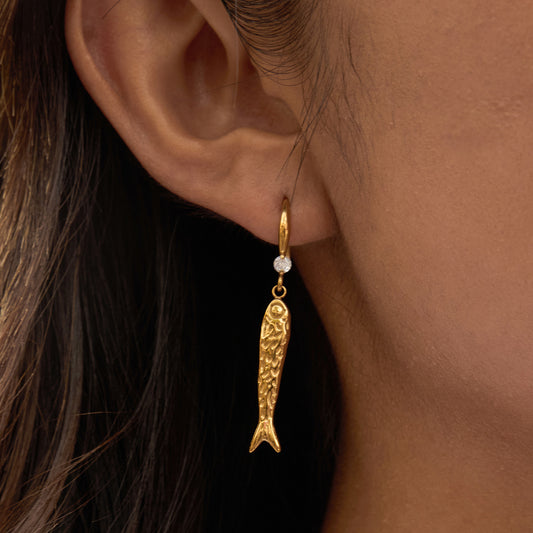 18K Gold PVD Stainless Steel Fish Pendant Earrings