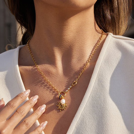 Regular price $6.13 USDRegular priceUnit price / perSale price $6.13 USDStainless Steel Rhinestone Abalone Shell Sun Pendant Necklace