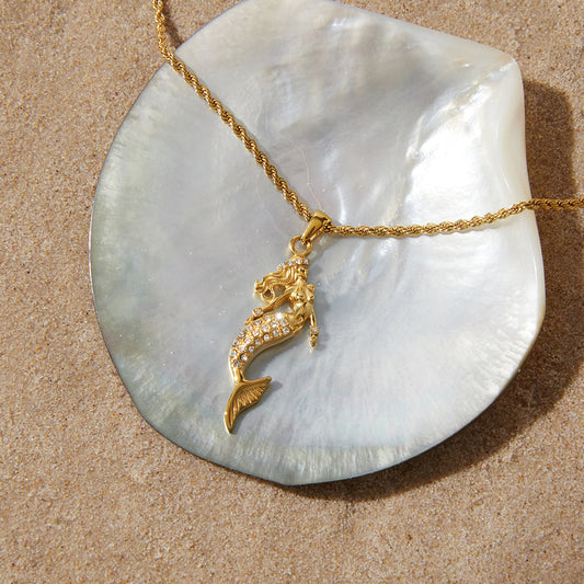 Stainless Steel Cubic Zirconia Mermaid Pendant Necklace