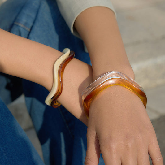 Regular price From $4.17 USDRegular priceUnit price / perSale price From $4.17 USDStainless Steel Acrylic Resin Wave Bangle