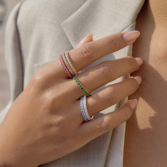 Stainless Steel Full Circle A-Grade Cubic Zirconia Ring