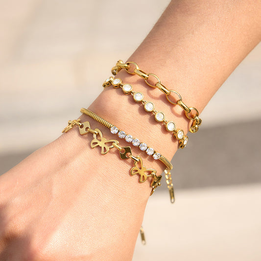 Regular price From $3.13 USDRegular priceUnit price / perSale price From $3.13 USDStainless Steel Rhinestone Stacked Cable Chain Bracelet