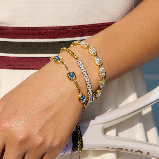 Regular price From $6.13 USDRegular priceUnit price / perSale price From $6.13 USDStainless Steel Blue Egg-shaped Rhinestone Cable Chain Bracelet