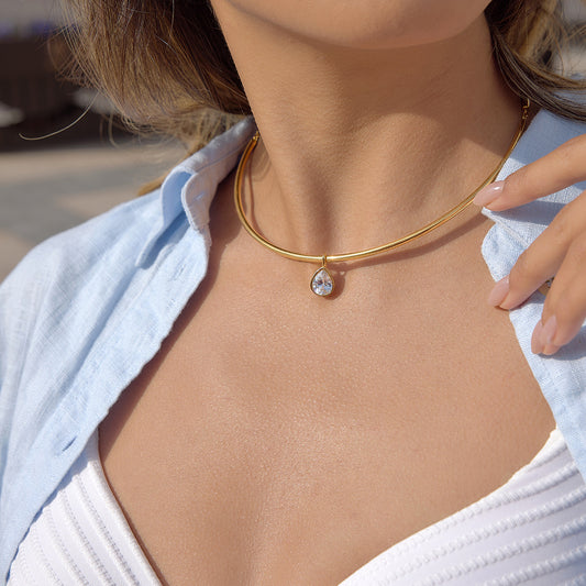 Regular price $8.09 USDRegular priceUnit price / perSale price $8.09 USDStainless Steel White Cubic Zirconia Pendant Necklace