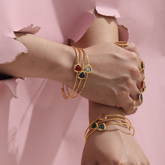Regular price $4.30 USDRegular priceUnit price / perSale price $4.30 USD18K Gold PVD Cut Triangular Czech Glass Stone Cuff Bracelet