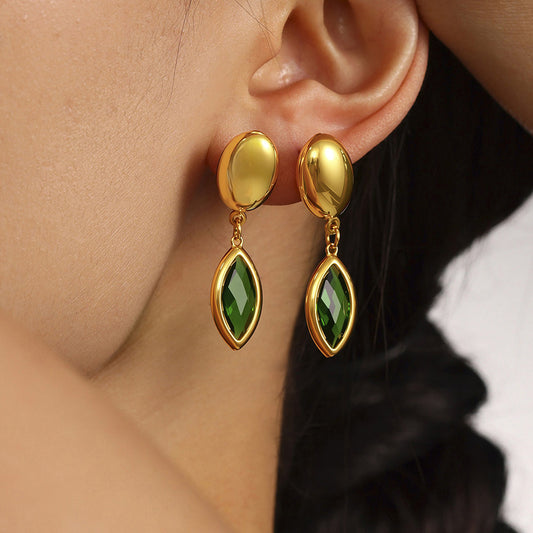 18K Gold PVD Cubic Zirconia Stainless Steel Earrings