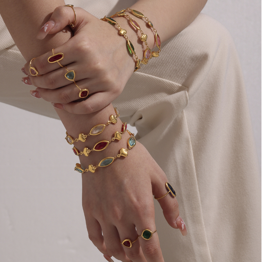 18K Gold PVD Cut Czech Glass Heart Splicing Bracelet