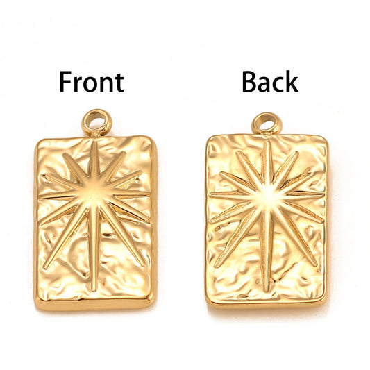 18K Gold PVD 3D Sun Rectangular Stainless Steel Pendant