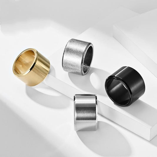 18K Gold PVD 19mm Width Brushed Chunky Steel Stainless Blank Ring