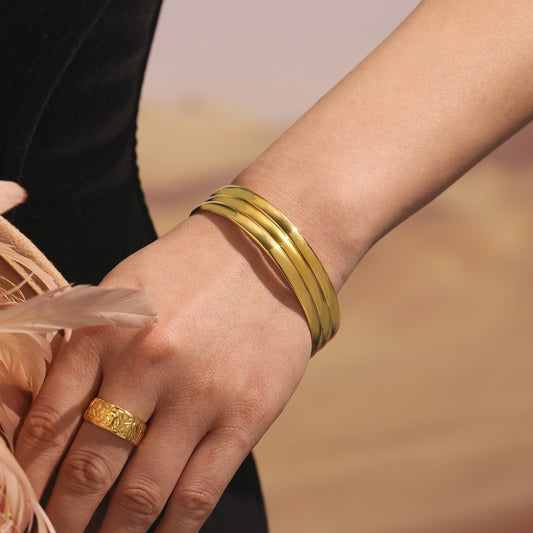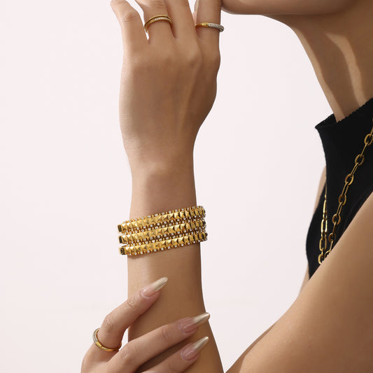 Stainless Steel 18K Gold PVD Spring Texture Bracelet