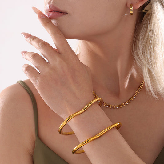 Regular price From $3.34 USDRegular priceUnit price / perSale price From $3.34 USDStainless Steel 18K Gold PVD Spring Texture Bracelet