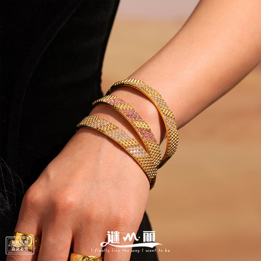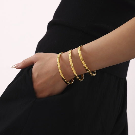 Hollow Texture Stainless Steel 18K Gold PVD Bangle Bracelet