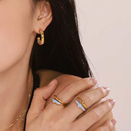 Regular price From $3.86 USDRegular priceUnit price / perSale price From $3.86 USDStainless Steel Double Layer Wave Oil Drop Ring