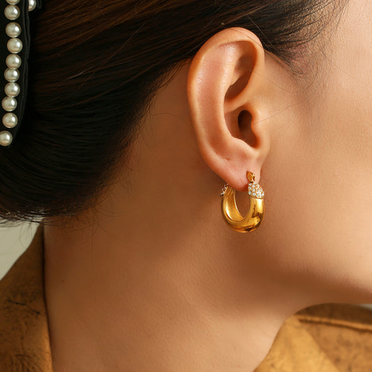 Regular price From $3.82 USDRegular priceUnit price / perSale price From $3.82 USDVintage Stainless Steel Inlay Rhinestones Hoop Earrings