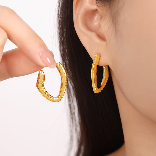 Regular price From $3.52 USDRegular priceUnit price / perSale price From $3.52 USDStainless Steel Strap Textured Hoop Earrings