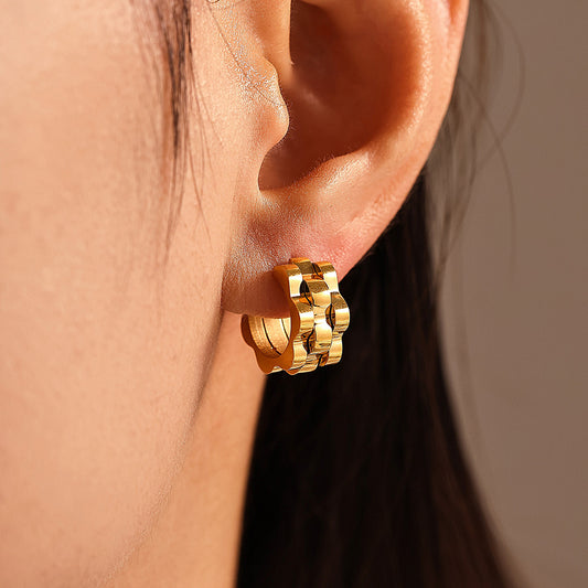Stainless Steel Multi-layer Hollow Chain Shape Hoop Earrings
