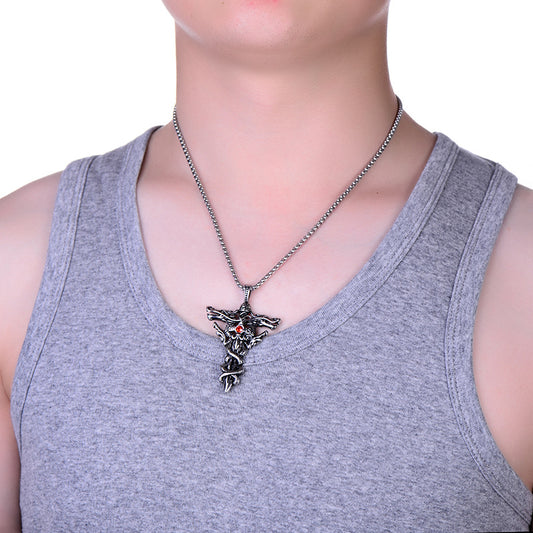 Stainless Steel Wrapped Sword Cross Pendant Necklace