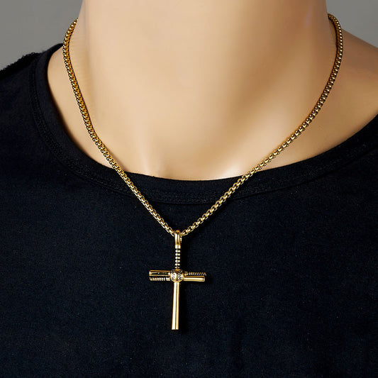 Stainless Steel Punk Men's Cross Pendant Necklace