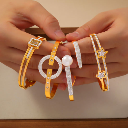 Star Ring Imitation Pearl Square Stainless Steel Bracelet