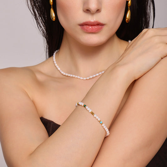 Natural Stone Handmade Beaded Freshwater Pearl Bracelet
