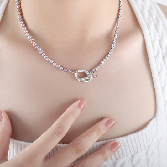 Lilac Freshwater Pearl Splicing Tennis Chain OT Buckle Necklace