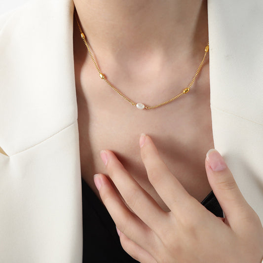 Simple Imitation Pearl Pendant Stainless Steel Necklace