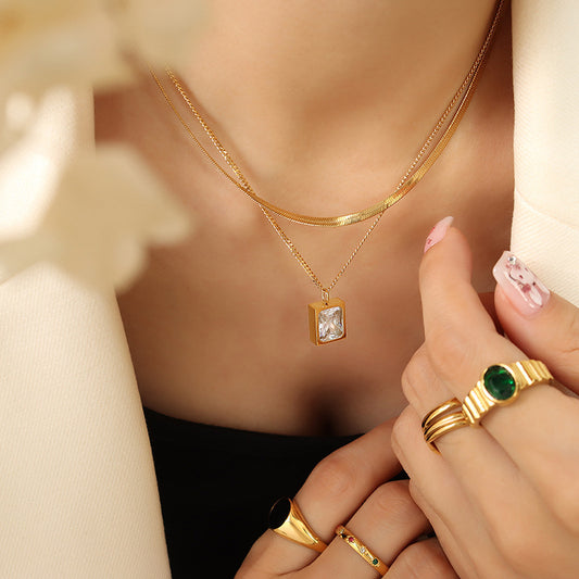 Regular price From $4.75 USDRegular priceUnit price / perSale price From $4.75 USDSquare Pendant Double Layer Stainless Steel Necklace