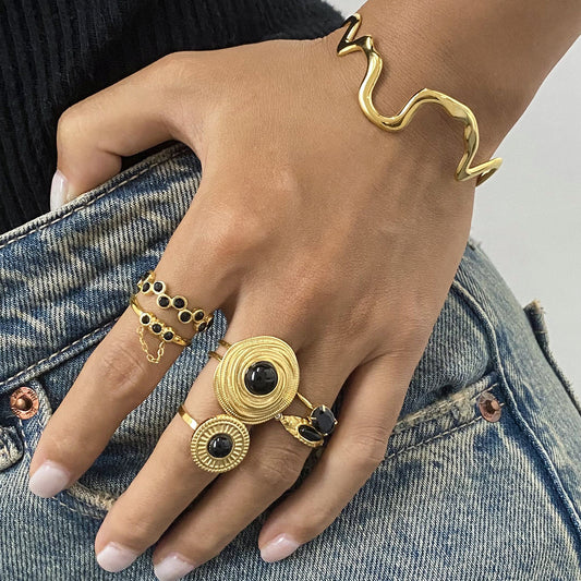Stainless Steel 18K Gold PVD Stacking Ring Combination
