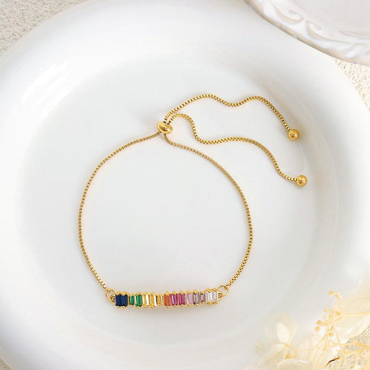 Rainbow Cubic Zirconia Stainless Steel Anklet
