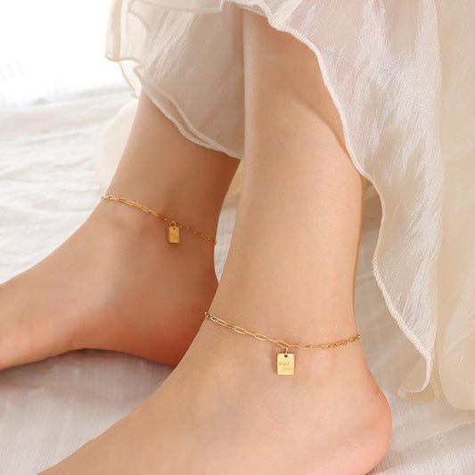 LUCKY English Letters 18K Gold PVD Stainless Steel Anklet