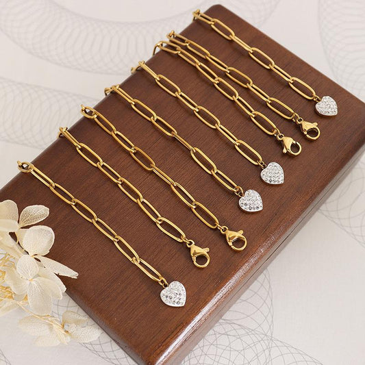 18K Gold PVD Heart Shape Chain CZ Stainless Steel Anklet