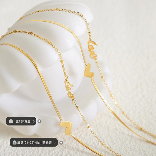 Golden Letter Heart Chain Double Layer Stainless Steel Anklet