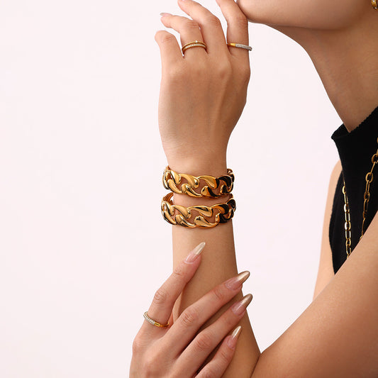 Stainless Steel Wavy Edge Texture Cuff Bracelet