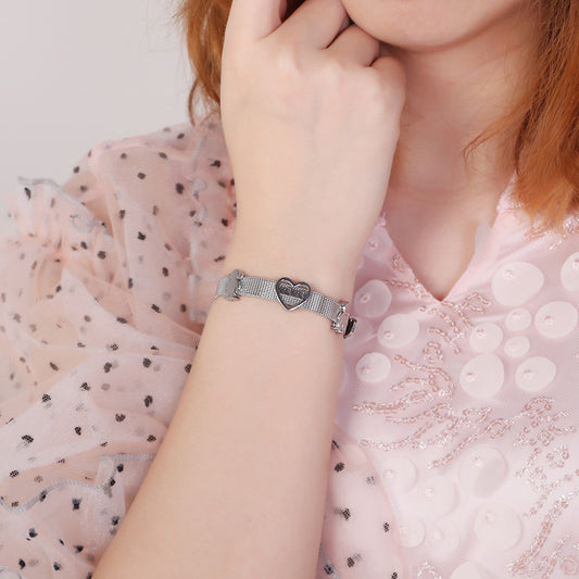 Stainless Steel Heart Shape Hollow Mesh Strap Bracelet