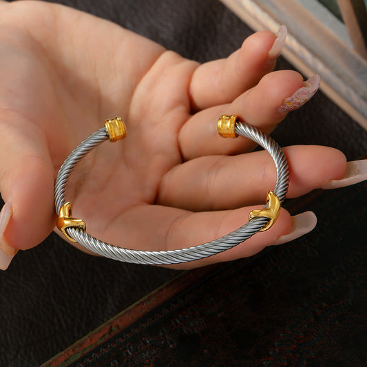 Stainless Steel Multi-layer Twist Cuff Bracelet