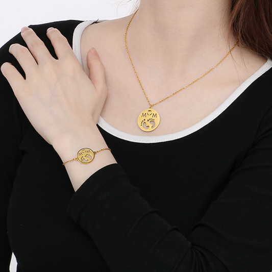 Stainless Steel MOM Letter Round Pendant Footprint Pattern Bracelet
