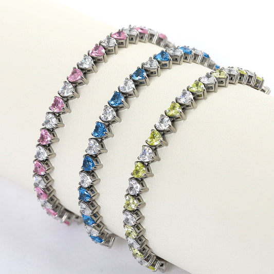 4/5mm Peach Heart Zircon Stainless Steel Tennis Bracelet