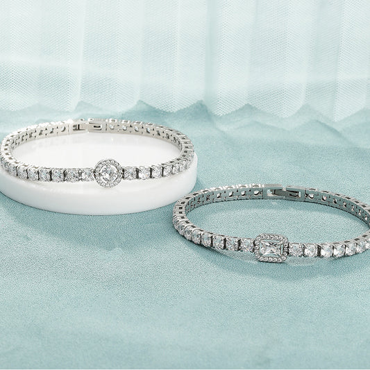 Stainless Steel Inlaid Round/Rectangle Zircon Main Stone Tennis Bracelet