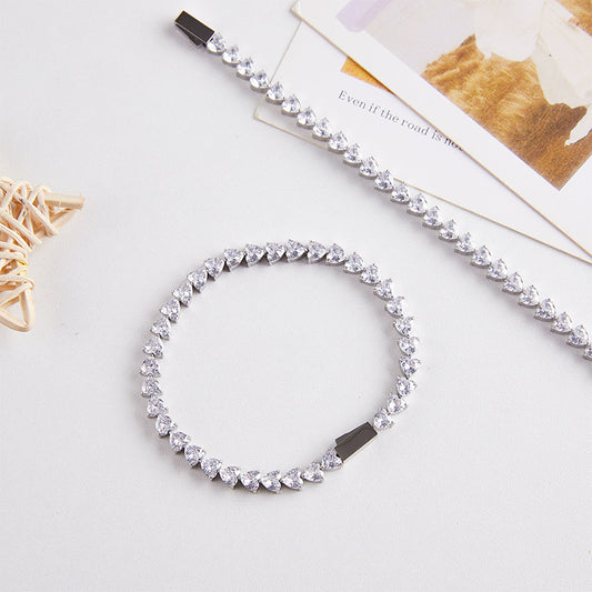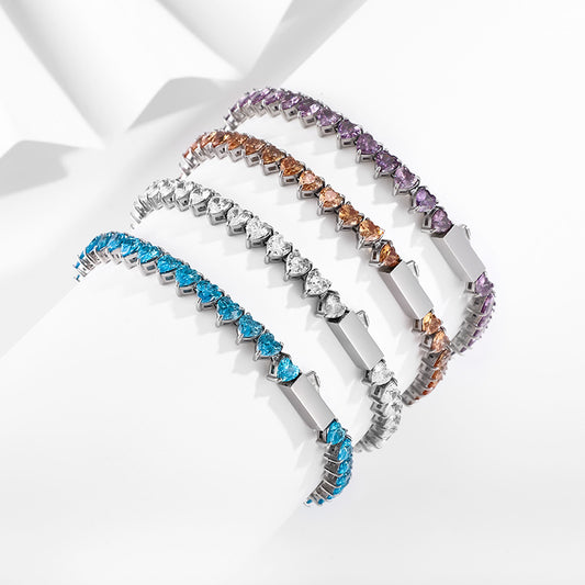 4x4MM Heart Single Row Zircon Tennis Bracelet