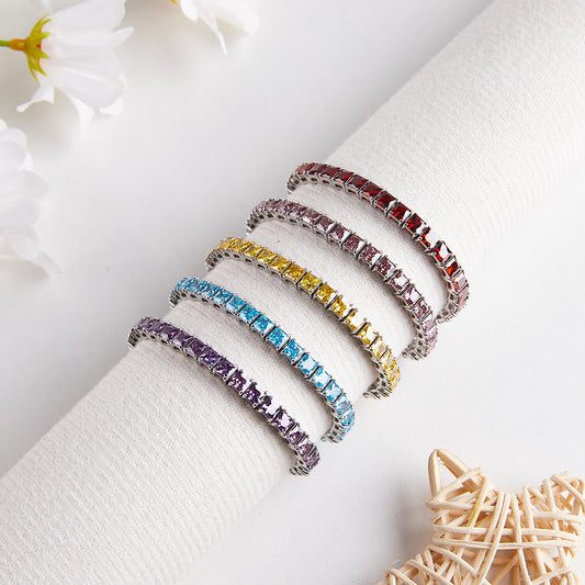 4x4MM Single Row Multi Colored Cubic Zirconia Tennis Bracelet
