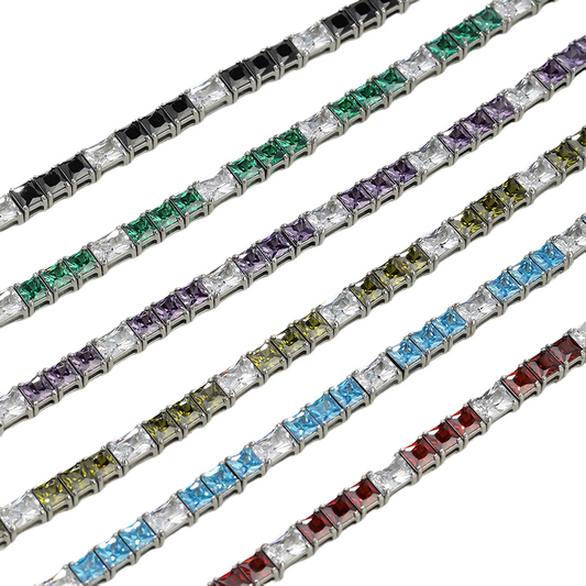 4X4mm Rainbow Zircon Tennis Stainless Steel Bracelet