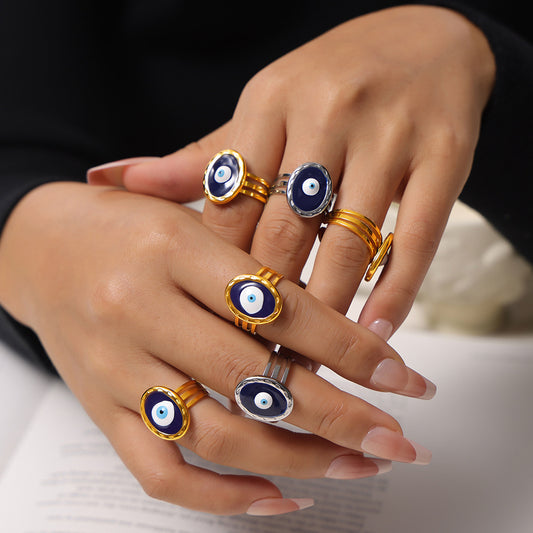 Stainless Steel Evil Eye Oil Drop Cuff Ring