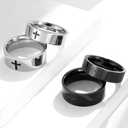 Polished Cross Drop Oil Stainless Steel Couple Ring