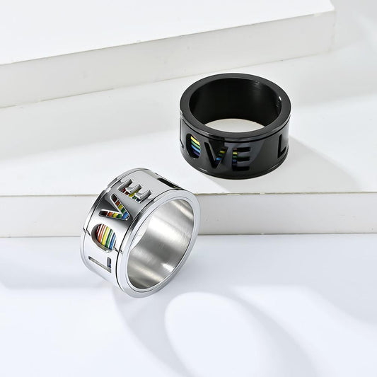 Rainbow LOVE Letter Stainless Steel Chunky Spinner Ring