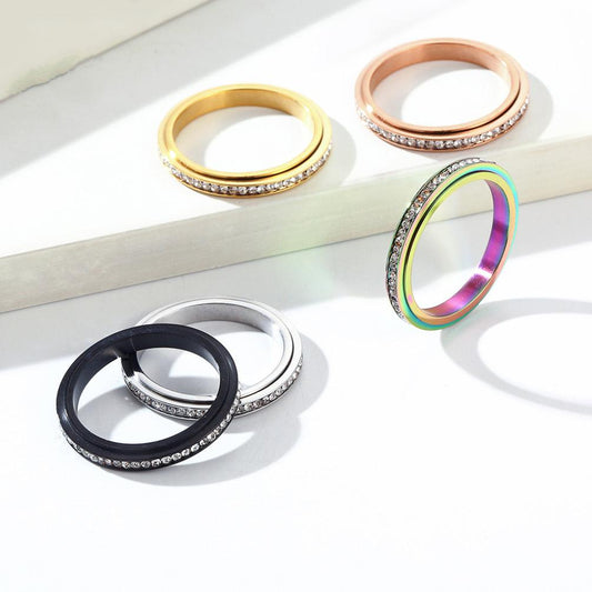 3mm Cubic Zirconia Stainless Steel Spinner Ring