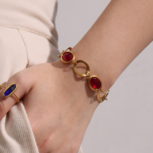 Stainless Steel 18K Gold PVD Oval Cut Crystal Glass Bracelet