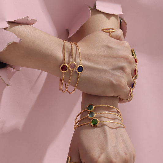 Regular price $9.08 USDRegular priceUnit price / perSale price $9.08 USDStainless Steel 18K Gold PVD Oval Cut Crystal Glass Bracelet