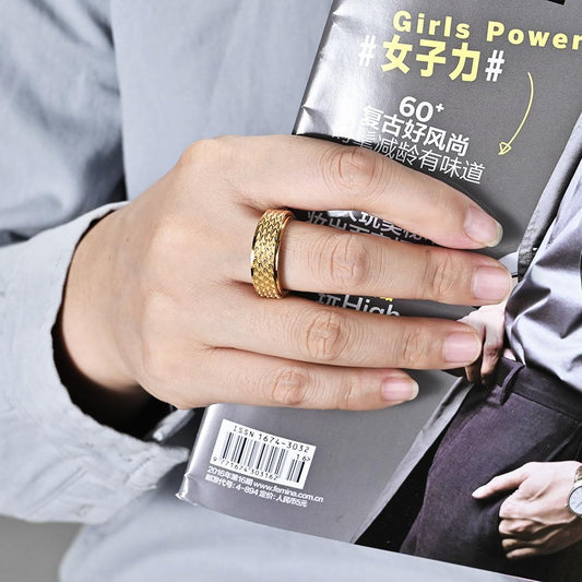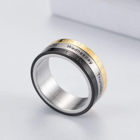 Brushed Stainless Steel Gold PVD Spinner Ring